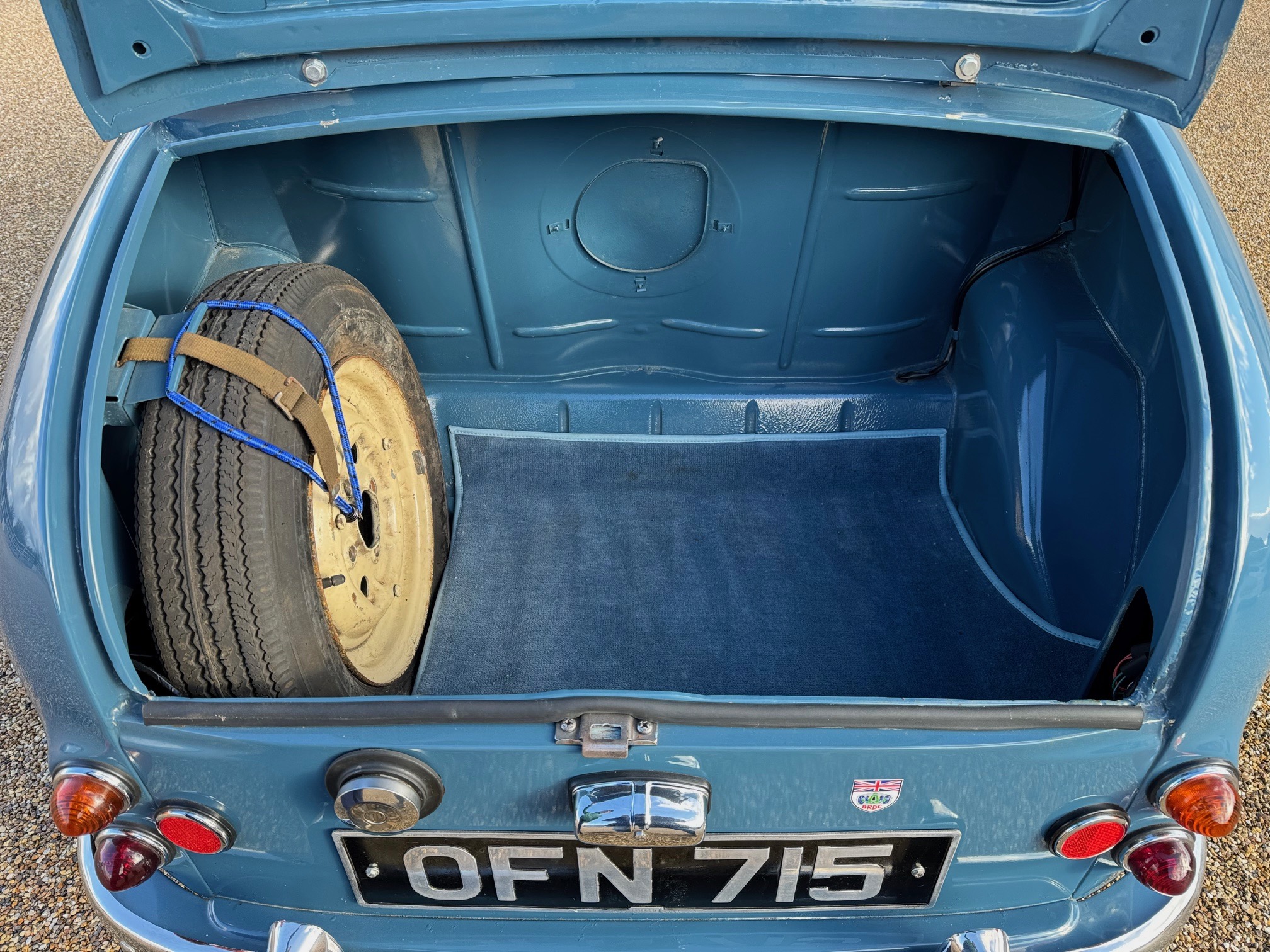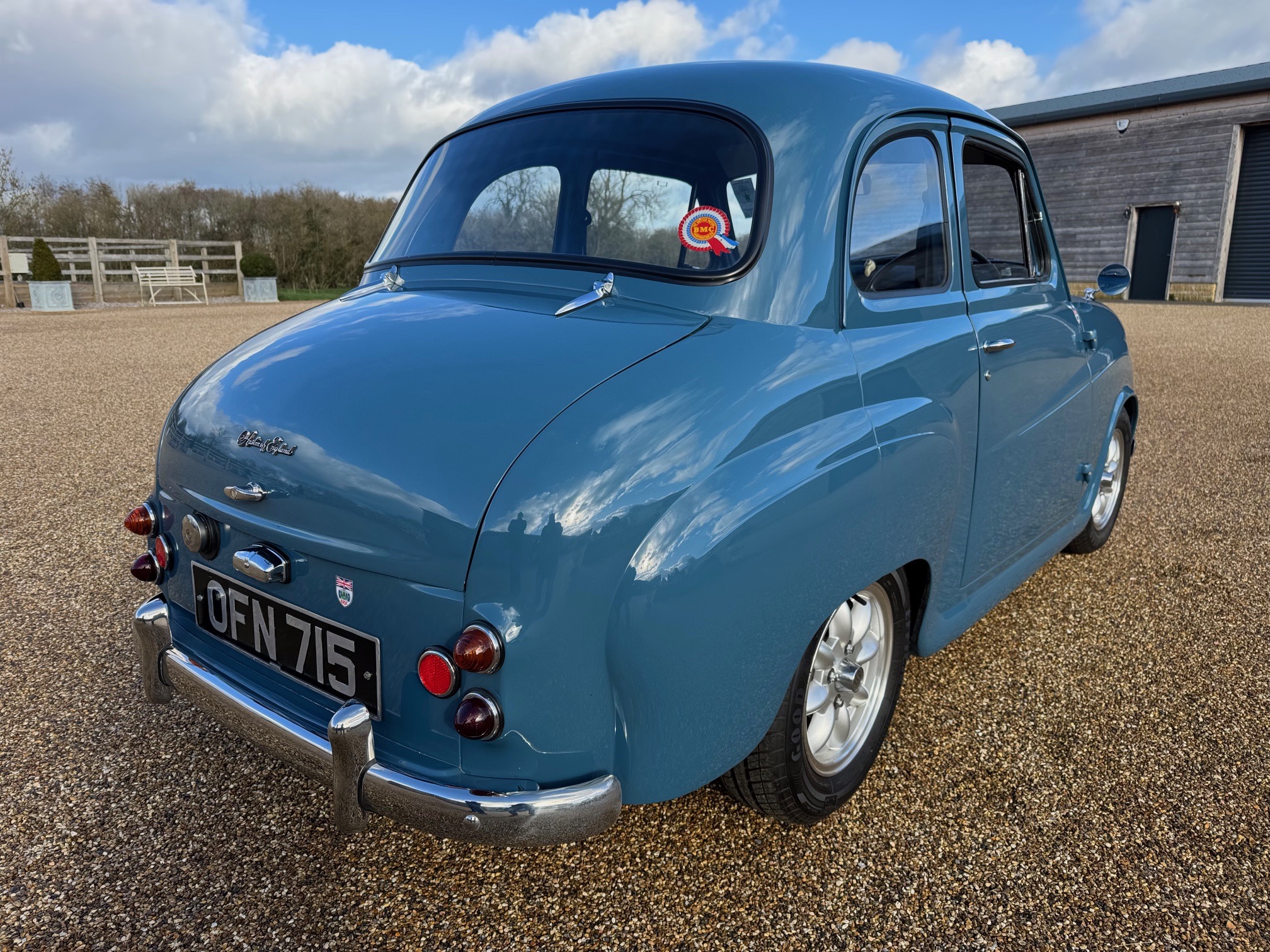 First registered on the 1st of March 1958, as a two door Saloon colour blue with registration number OFN 715.