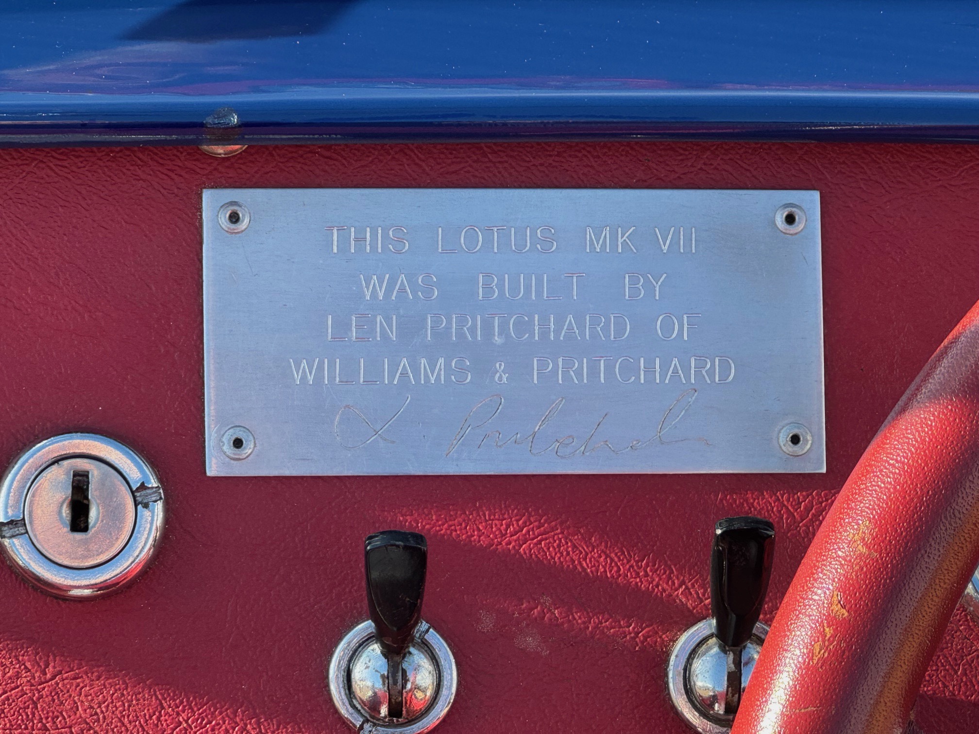Len Pritchard of Williams & Pritchard built this series one Lotus Seven using a chassis and parts supplied by Lotus Engineering. It is believed that Colin Chapman may have supplied the chassis to Len as part payment for the work he conducted on behalf of Lotus.